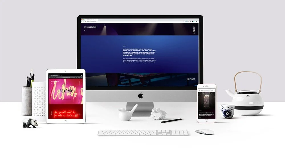 Key project features included a unique and “different” navigation menu for desktop platforms, video header, scrollable gallery of Beyond Projects work, live Instagram feed and parallax scrolling graphics with colourful text sections.